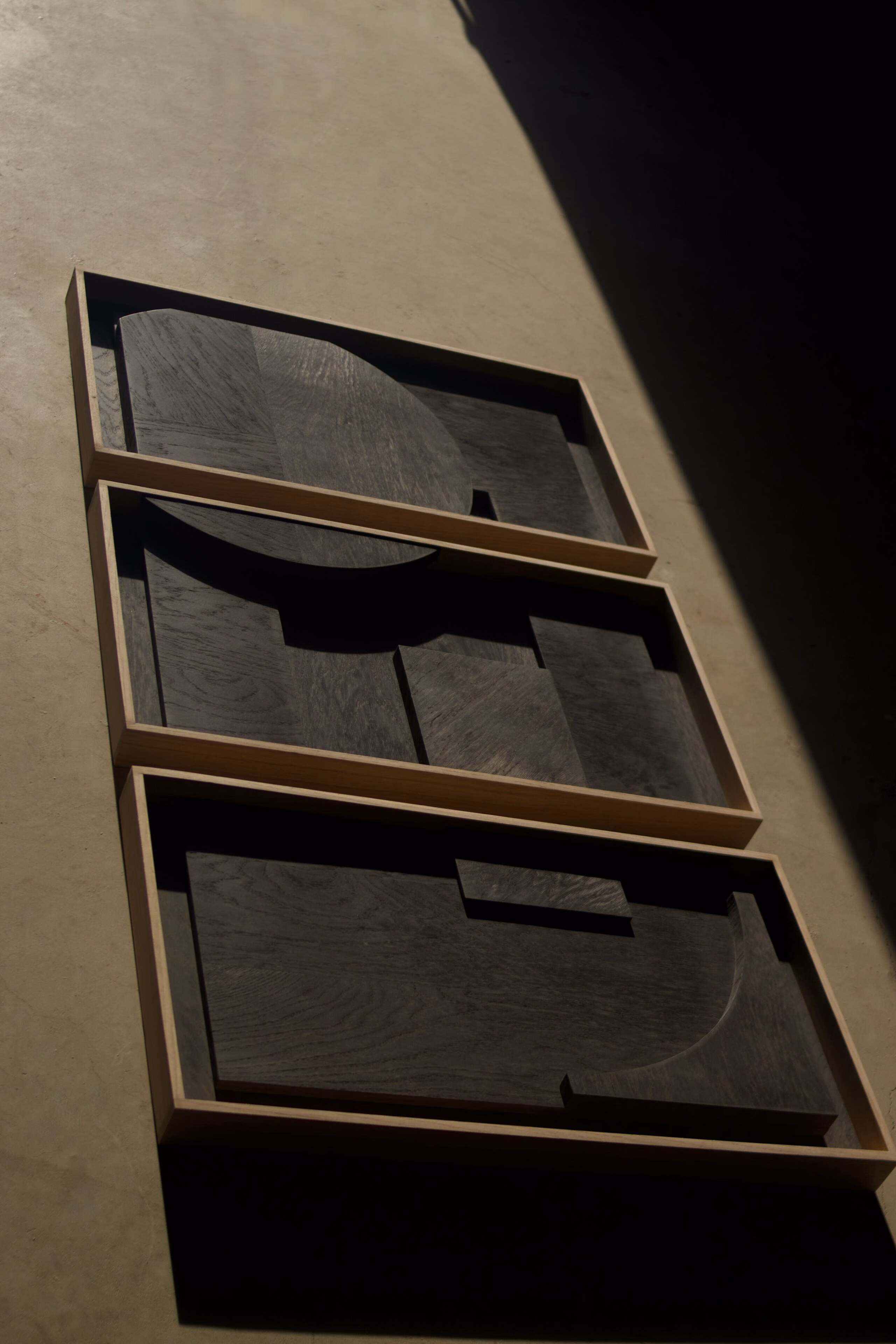 Triptyque monochrome » Lestandau » réalisé en placage de chêne des marais.